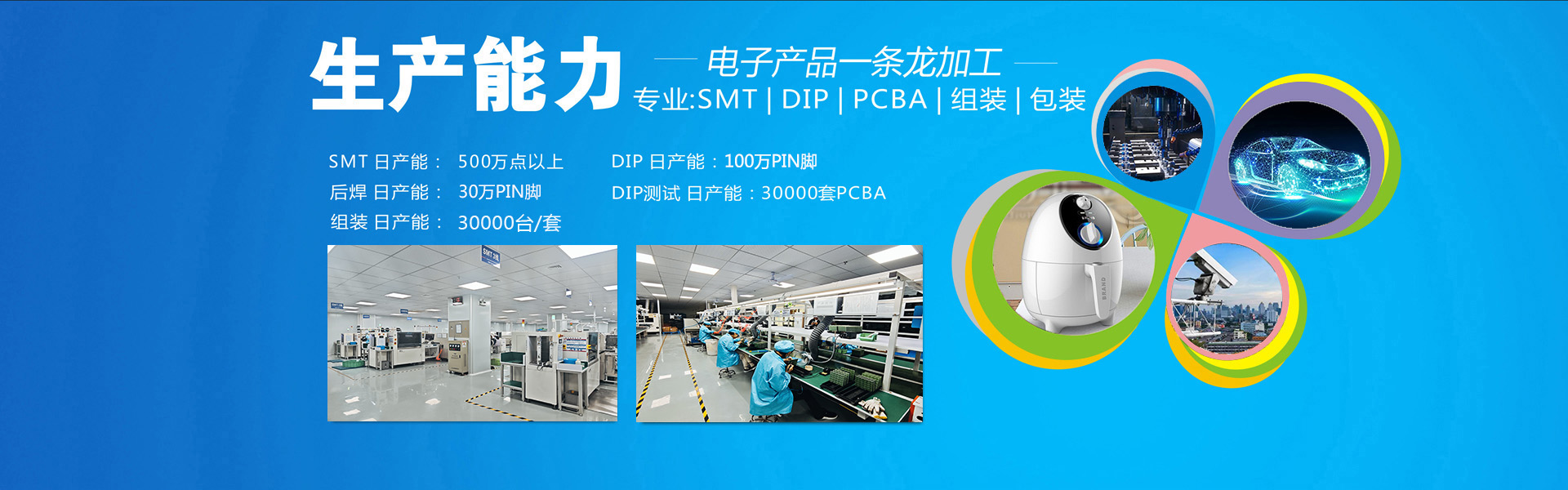 >>日產(chǎn)能貼片500萬點(diǎn)、插件100萬PIN、組裝3萬臺/套